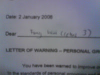 Ok im not so sure if you guys can see whats up there, its a warning letter. Yes first day of school i've got a warning letter from the school because my hair is long. Well im quite piss because in other JC they dont really care and why must they care. Oh if you guys still dont know, i've been posted to SRJC. Well i guess for me it really suck cause i need to wake up like 5.30 in the morning. My body have not adjust to this change, so the discharge of my body waste is still not 100%.